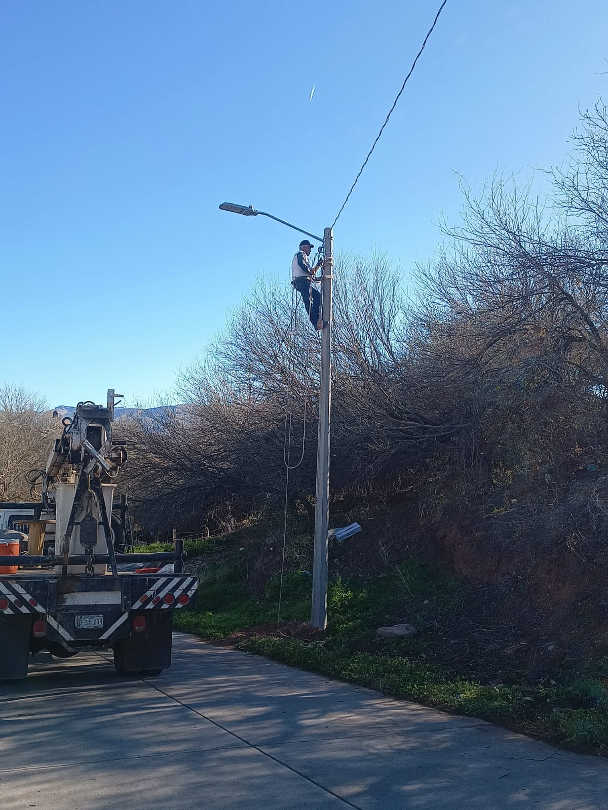 Instalando lámparas nuevas, en los lugares que se dañaron y no están encendiendo.