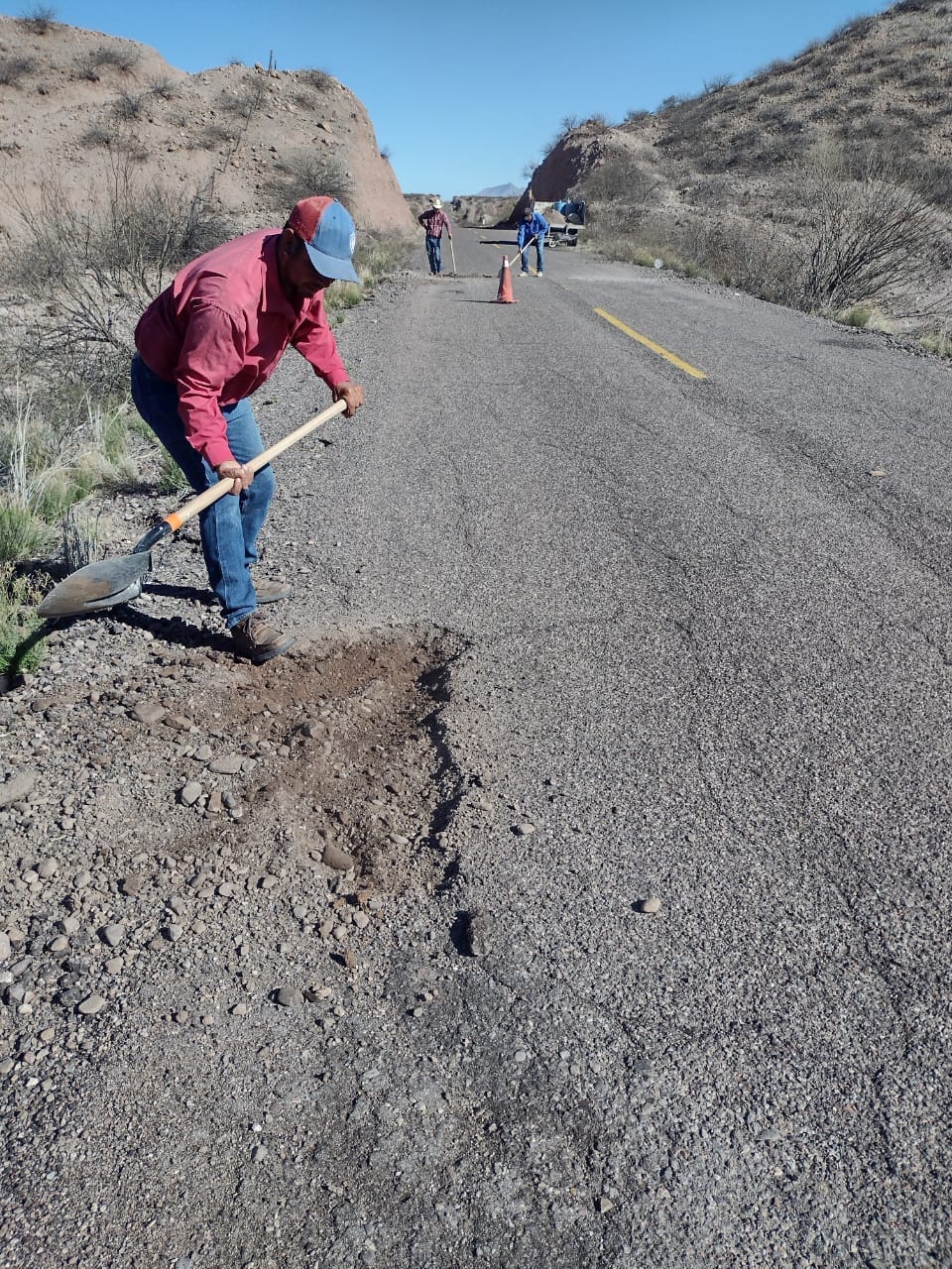 Para una mayor seguridad, de todas las familias, que pasan por la carretera estatal, que pertenece a nuestro Municipio, andamos tapando todos los baches, ya que han pasado varios accidentes.