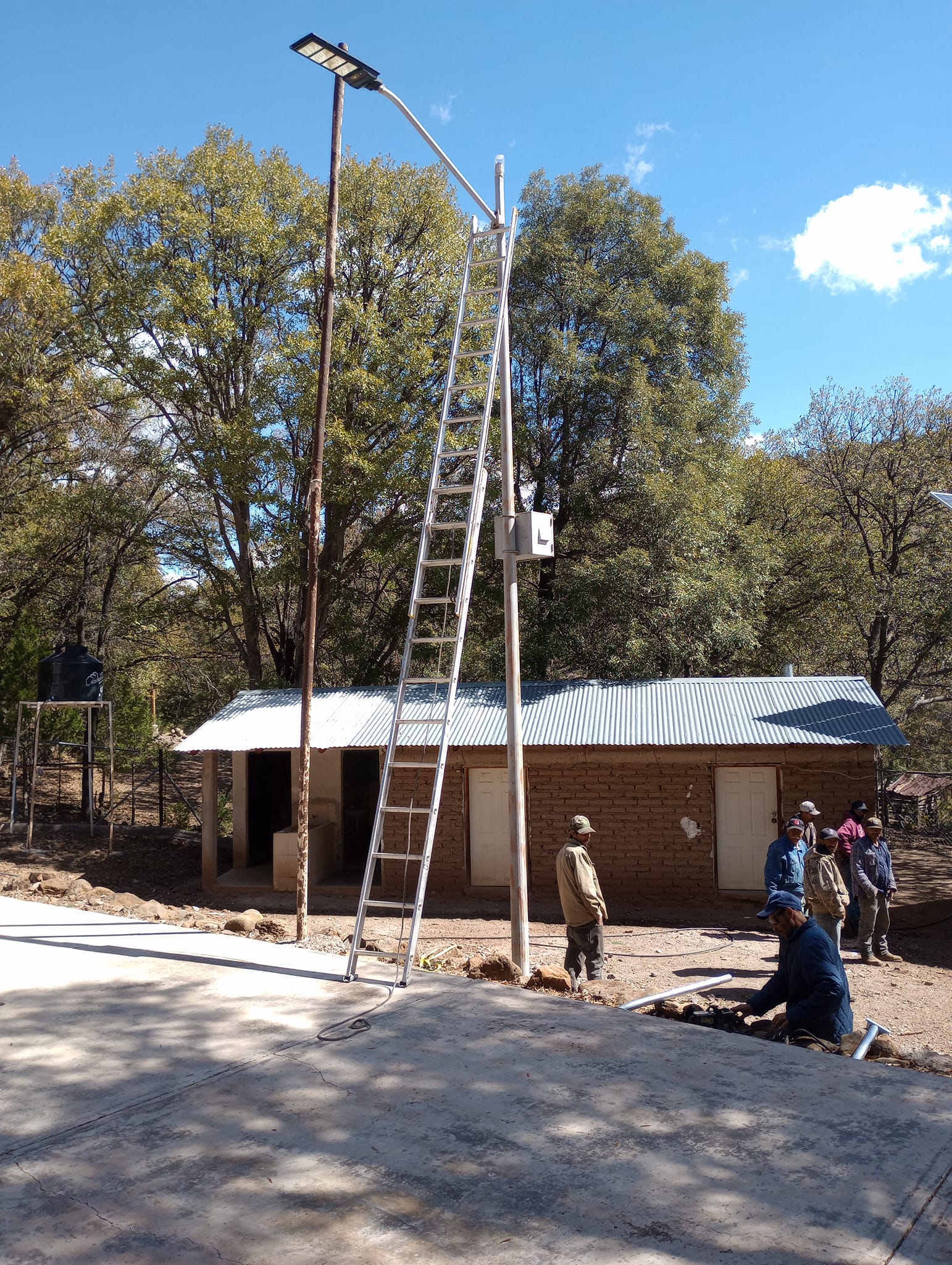Se instalaron 8 lámparas solares, en la Comunidad de Agua Fría y también en la escuela. Para ya tener un total de 14 lamparas en está Comunidad.