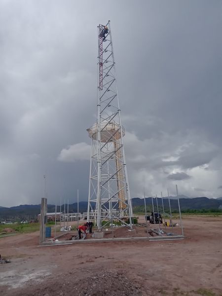 Falta poco para que se termine de poner la antena. hoy terminaron de poner la torre.