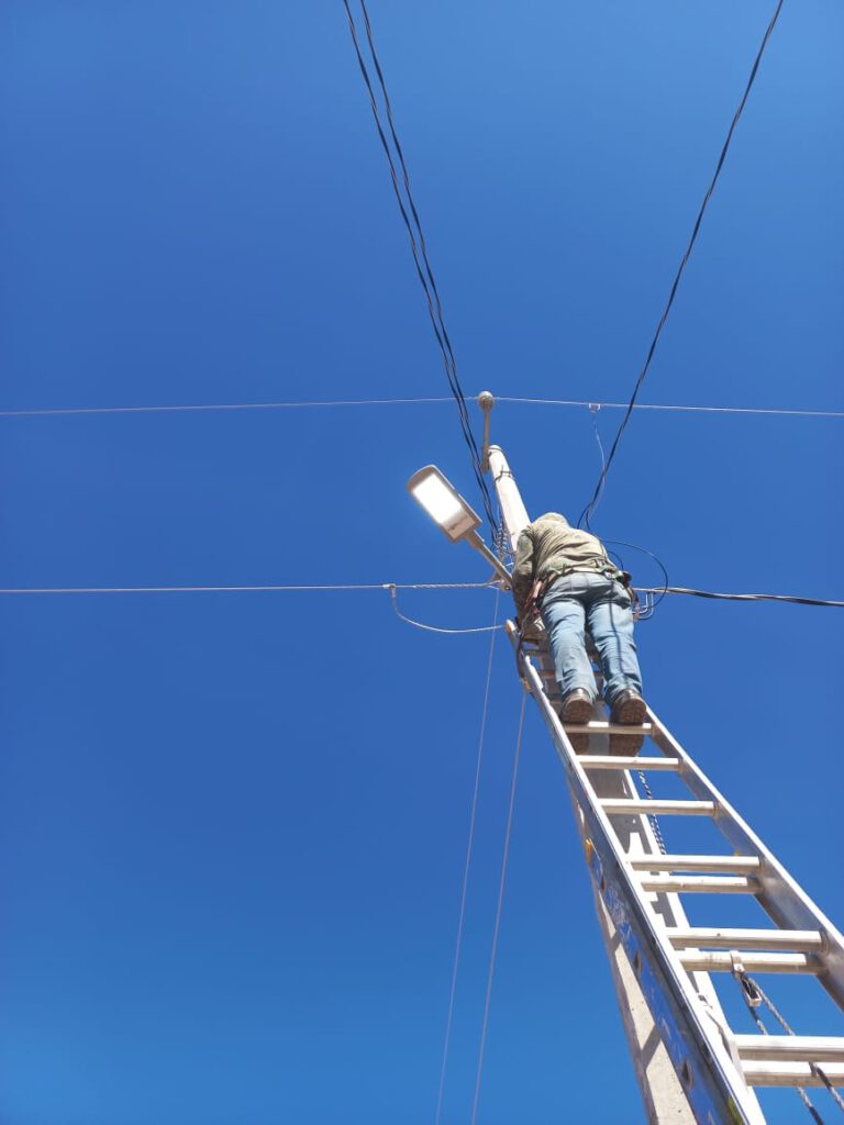Instalando lámparas nuevas, en los lugares que se dañaron y no están encendiendo.